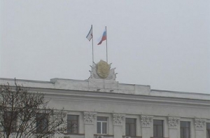 Центр Симферополя, как передает корреспондент Украинской службы Би-би-си, перекрыт милицией, туда никого не пускают, над парламентом подняли российский флаг. Захвачено также и здание правительства Крыма.