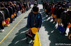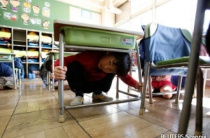 Помимо траурных мероприятий в японских школах прошли массовые занятия и тренировки по отрабатыванию действий в случае стихийного бедствия или катастрофы.
