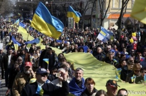 Сторонники киевских властей прошли маршем по улицам Одессы, а затем собрались возле памятника Неизвестному матросу.
