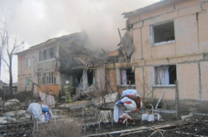 Взрыв произошел в ночь на воскресенье в двухэтажном жилом доме в поселке Конезаводском Марьяновского района, дом после этого частично обрушился.