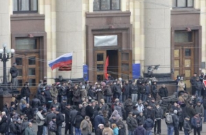Как сообщалось, вечером 6 марта пророссийски настроенные активисты захватили здание Харьковской облгосадминистрации. Несколько сотен митингующих в течение 10 минут оттеснили милиционеров, которые охраняли вход, и вошли внутрь.Меньше чем через полчаса после начала штурма они сняли украинский флаг со здания и водрузили на его место российский триколор. Милиция и внутренние войска, охранявшие вход в здание, не оказывали существенного сопротивления.