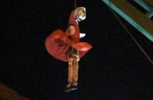В Луганске участники протестной акции устроили настоящий перфоманс у стен здания СБУ, повесив на рекламном щите куклу Юлии Тимошенко. При этом на кукле были сделаны различные наколки, намекающие на тюремное прошлое кандидата в президенты страны, пишет Life News.