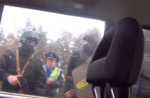 Автомобиль активистов остановили сотрудники ГАИ, требуя выйти из машины под угрозой оружием. Когда те не подчинились и стали вызывать по телефону следственно-оперативную группу группу, им в приезде оной отказали, предложив выйти из машины. Потом подошли сотрудники украинского спецподразделения. Все происходящее фиксировалось камерами.