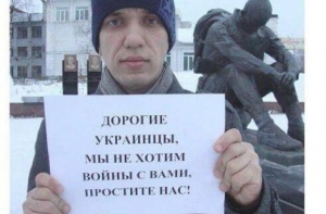 «От всего сердца большая благодарность всем россиянам, которые не боятся поддержать Украину!», - говорится в сообщении сторонников Евромайдана, к которому прилагалась также фотография некого мужчины с плакатом: «Дорогие украинцы, мы не хотим войны с вами. Простите нас».