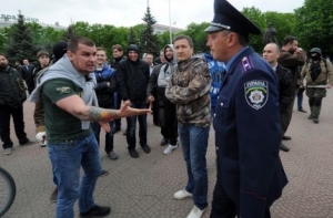 В Луганске сотрудники правоохранительных органов, которые охраняли здание областной администрации, перешли на сторону митингующих и прикололи георгиевские ленточки. Об этом сообщает УНИАН.