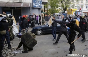 Тем временем РИА Новости сообщает, что около 50 пророссийских активистов, засевших на крыше Дома профсоюзов, утром в субботу милиция вывела из здания, их в автозаках отвезли в отделения. Ранее Думская.net сообщала, что на крыше здания находились 40 пророссийских активистов. Они не хотят уходить оттуда, просят милицию сделать им коридор.