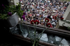 «Вчера утром город прощался с погибшими во время кровавых событий 2 мая. Хоронили шестерых, в том числе и депутата областного совета Вячеслава Маркина, которого часто можно было видеть на митингах Антимайдана. Кроме 46 погибших, сообщили еще о 48 пропавших без вести. В моргах два десятка тел остаются неопознанными», – отмечает украинский телеканал ТСН.
