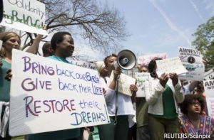 Радикальная исламистская группировка «Боко харам» взяла на себя ответственность за похищение школьниц. Ее лидер заявлял, что собирается продать часть пленниц в рабство, других выдать замуж за мусульман (большинство похищенных – христианки). Местоположение девочек до сих пор неизвестно. Полиция назначила вознаграждение 300 тысяч долларов за помощь в поимке боевиков.