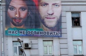 Накануне поздно вечером прямо на фасаде дома № 25 по Зубовскому бульвару в центре Москавы неизвестные вывесили огромный баннер с изображением небритого оппозиционера Алексея Навального и победителя «Евровидения-2014» Кончиты Вурст. Также на плакате содержалась надпись «Нас не остановить!».
