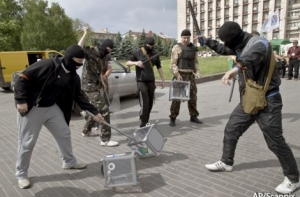 Ранее ополченцы заявили, что выборы в Донецке не состоятся, поскольку накануне были конфискованы бюллетени, штампы центральной избирательной комиссии и все предвыборные документы.