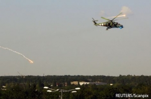 Тем временем на окраинах Донецка и в прилегающих к нему поселках также идут вооруженные столкновения с украинскими силовиками. Как сообщает ИТАР-ТАСС, в районе поселка Пески, что в пяти километрах от аэропорта Донецка, был сбит военный вертолет, с которого в аэропорту высадились бойцы Нацгвардии.