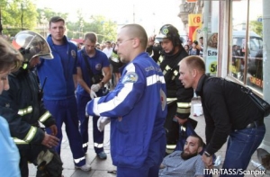 Среди пострадавших оказались как пассажиры автобуса, так и прохожие, которых задело упавшими рекламными щитами - по счастливой случайности непосредственно на пути неуправляемого автобуса людей не оказалось.