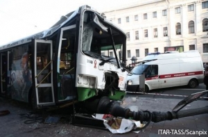 Авария произошла примерно в 20.45 на оживленном Невском проспекте у дома №64, что неподалеку от Аничкова моста. Следовавший по выделенной для общественного транспорта полосе автобус «ЛиАЗ» свернул с проезжей части и выскочил на тротуар. Сбивая рекламные щиты, тяжелая машина на скорости около 60 км/ч проехала несколько метров, пока не налетела на фонарный столб.