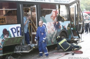 Из 20 пострадавших 15 на месте обратились за помощью к медикам. «В результате медицинского осмотра только восемь человек были госпитализированы в медицинские учреждения, семь человек после осмотра от госпитализации отказались, отделавшись легкими ушибами», - говорится в сообщении местного ГУ МЧС. Двое из раненых находятся в тяжелом состоянии, в том числе и водитель автобуса.