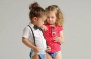 В рекламе подгузников мы видим парочку малышей, разодетых под рокеров, с гитарами и скейтбордами, на которых восторженно смотрит девочка в новых подгузниках от Huggies из денима. При этом девочка порой встает перед камерой в различные провокационные позы и поправляет галстук у малыша. Поначалу реклама собирала только восторженные отзывы. Пользователи писали, что это все необыкновенно «мило и трогательно».