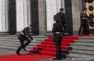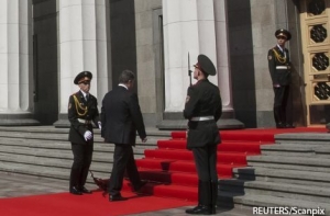 Десять военнослужащих президентского полка отправятся в зону проведения силовой операции после инаугурации Петра Порошенко. Во время того как президент Украины шел по красной ковровой дорожке, у одного солдата из рук выпал карабин, а затем упал и он сам.