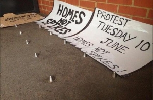 Власти сделали заявление, что установка этих шипов – контрпродуктивный шаг в борьбе с проблемой бездомных. Также они подчеркнули, что непричастны к установке этих шипов.