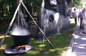 А в воскресенье, тоже по традиции, прямо под открытым небом состоялся праздничный завтрак мэра города с представителями общественности и музыкальная программа капеллы «Скрипачи».И даже проливной дождь не смог нарушить эту традицию.