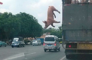 Сразу в двух странах в июне этого года стало известно о случаях побега свиней из перевозивших их на бойни грузовиков. Один из таких инцидентов произошел в одной из стран Южной Америки (какой именно, неясно), сообщает The Daily Mail. На видео, которое снимали из автомобиля. ехавшего следом за грузовой машиной, четко видно, как увесистая свинья переваливается через борт кузова и падает на землю.