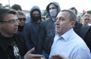 14 июня несколько сотен демонстрантов устроили беспорядки возле здания посольства России в Киеве. Попытавшись успокоить участников акции, Дещица вместе с ними проскандировал бранную кричалку в адрес президента России.