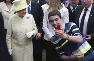 Он выбежал из толпы к королеве и сделал на ее фоне селфи. На растиражированных газетами забавных кадрах видна довольная физия подростка - ему удалось сделать, наверное, первое в мире селфи с королевой Елизаветой II.