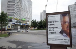 Активисты независимой арт-группы «Невежливые люди», которые выступают против «бессмысленной агрессии, западной пропаганды и лжи, а также за сильную Россию», провели новую кампанию в центре Москвы, развесив там плакаты с обвинениями в адрес Петра Порошенко относительно развала Украины.
