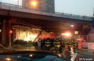 Фасадная часть Бруклинского моста в американском городе Нью-Йорк обрушилась, в результате пять человек получили ранения, передает в четверг телеканал CBS со ссылкой на Департамент пожарной охраны Нью-Йорка.