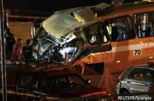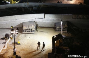 В результате обрушения магистрали были сильно повреждены несколько автомобилей, проезжавших в этот момент под ней. Пока неизвестно, остается ли кто-то под завалами.