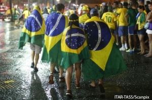В Сан-Паулу болельщики бразильской команды устроили массовые беспорядки во время полуфинального матча Бразилия - Германия, который закончился разгромным поражением сборной хозяев со счетом 1:7.