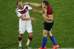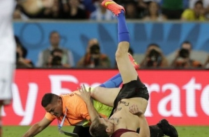 Мужчина подбежал к игроку немецкой сборной Бенедикту Хеведесу и попытался поцеловать его, после чего его увели с поля охранники. Данный эпизод не попал в телевизионную трансляцию - вместо этого зрителям показали статую Христа-Искупителя в Рио-де-Жанейро, передаёт «Р-Спорт».