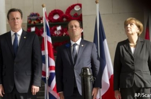 Пресс-служба президента Франции сообщила, что телефонный разговор между Кэмероном, Меркель и Олландом состоялся в воскресенье утром.
