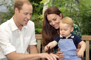 На одном из снимков Джордж наблюдает за бабочкой, сидящей на руке у его отца, а на другом он со своими родителями смотрит в сторону летящей бабочки.