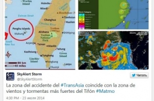 По сообщению издания AP, катастрофа произошла в результате второй попытки самолета приземлиться в штормовую погоду. В первой половине дня во вторник Тайвань был охвачен тайфуном Матмо, и Центральная метеослужба вынесла предупреждение о сильном дожде во второй половине дня.
