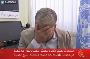 Позже в cвоем микроблоге Twitter пресс-секретарь написал, что «слезы говорят красноречивее, чем слова», добавив, что его чувства «совершенно незначительны» в сравнении с тем, что испытывают жители Газы. Он также отметил: «Ближневосточное агентство ООН для помощи палестинским беженцам потрясено происходящим в Газе. Мы достигли критической точки, наших сотрудников убивают, приюты для беженцев переполнены. Чем это все закончится?»