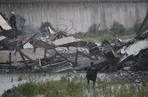 В заявлении полиции Италии указывается, что обрушилась часть виадука на автостраде A10, длина обрушившегося участка составляет порядка 200 м. Обрушение пролетов, на которых в это время были проезжавшие автомобили, произошло во время сильного ветра и непогоды, указывает полиция и очевидцы.