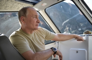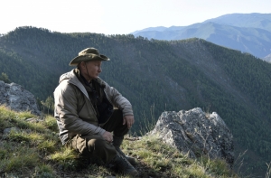 На кадрах, сделанных пресс-службой Кремля, запечатлено, как глава государства ходит по лесу, плавает на катере и задумчиво смотрит на горы.