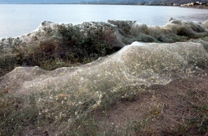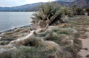 Часть побережья Греции в районе города Этолико из-за нашествия пауков покрыла огромная густая паутина.