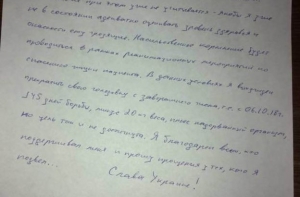 11 сентября сестра режиссера Наталья Каплан сообщила, что у Сенцова критическое состояние и что он написал завещание. «В то, что я скоро выйду и мы все счастливо заживем в Киеве, я уже не верю», - говорилось в письме Сенцова, которое его сестра опубликовала в своем «Фейсбуке».