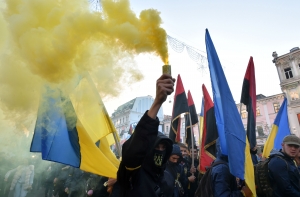 В воскресенье, 14 октября, по центральным улицам Киева прошел марш националистов по случаю 76-летия создания Украинской повстанческой армии. Марш проходил под лозунгом «Вернем Украину украинцам». Участники акции жгли файеры и дымовые шашки, выкрикивали националистические лозунги.