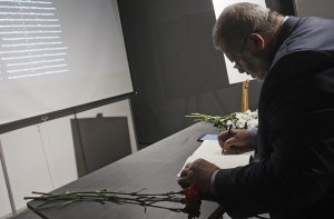 _В Киеве люди оставляют записи в книге скорби_