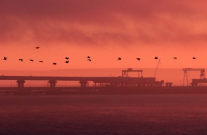 Все суда задержали примерно в 20 километрах от российского побережья и в 50 километрах к юго-западу от обычного места прохода судов по Керченскому проливу под Крымским мостом.