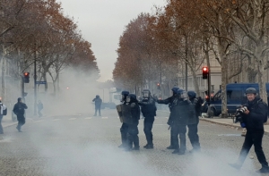 Полиция Парижа применила слезоточивый газ против демонстрантов из движения «Желтые жилеты», которые собрались на Елисейский полях с требованием не повышать цены на бензин. Об этом сообщает Le Figaro.