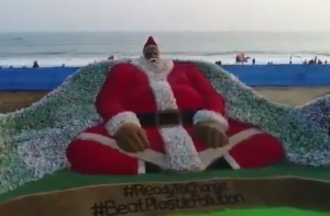Indian sand artist @sudarsansand attempted a new world record on Christmas Eve after creating a giant Santa Claus out of plastic bottles to convey a “green” message to #BeatPlasticPollution. pic.twitter.com/v80uY1dg4d