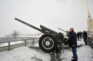 Президент России Владимир Путин совершил выстрел из пушки Д-30 на народных гуляниях в Петропавловской крепости в Санкт-Петербурге, передает РИА «Новости».