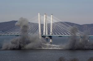 Отмечается, что первоначально предполагалось, что краны будут разбирать мост по частям, а остатки вывозить на барже, поскольку считалось, что взрыв нанесет урон атлантическому осетру и другим морским обитателям. Но, по словам инженеров, стальная конструкция моста оказалась нестабильной, и безопасность рабочих была под вопросом. В результате, пришли к выводу, что единственно возможный вариант – это взорвать мост.