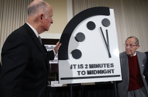 Символические часы судного дня, которые отражают представление сотрудников журнала «Бюллетень ученых-атомщиков» о неизбежности ядерной войны, оставлены в двух минуты до полуночи. Об этом говорится в сообщении «Бюллетеня».