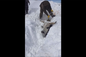 После сильных снегопадов скот в сельских районах по всему миру часто оказывается под снегом. Так, в прошлом марте попало на видео благополучное освобождение овцы в деревне Лланбистер в Уэльсе. Ее стадо насчитывало 2 тысячи животных, и о судьбе многих других овец владельцы узнали только после схода снега.