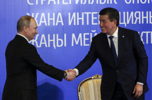 Киргизский лидер Сооронбай Жээнбеков подарил российскому президенту Владимиру Путину лошадь и собаку, сообщает РИА «Новости».