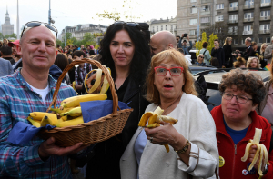 Сотни людей собрались, чтобы съесть бананы рядом с национальным музеем в Варшаве. Участники акции выразили несогласие с тем, что из музея убрали изображение обнаженной женщины с бананом.
