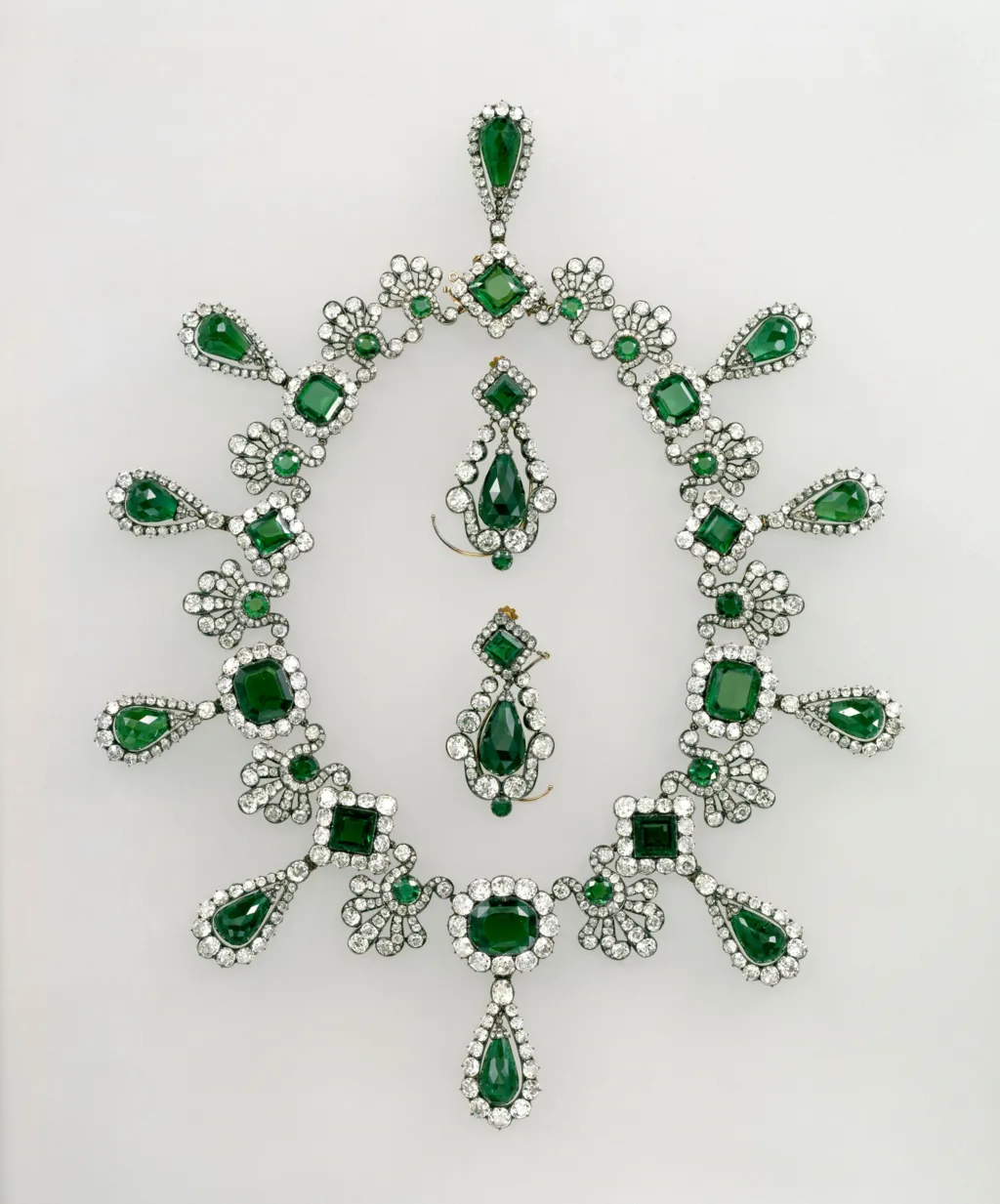- Изумрудное ожерелье Марии-Луизы (подарок Наполеона I в марте 1810 года): не менее 32 изумрудов (в т. ч. 10 грушевидных) и 1138 бриллиантов; работа ювелира Франсуа-Реньо Нито.